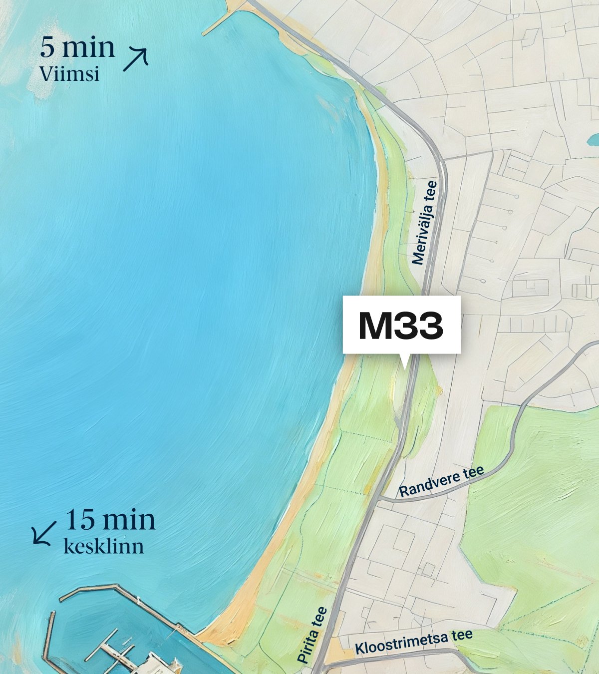 M33 juurde on mugav saabuda mitme erineva bussiliiniga. Hoone läheduses paiknevad peatused ühendavad piirkonda otse Tallinna kesklinna, Pirita ning Viimsi suunaga, mis teeb liikumise lihtsaks nii töötajatele kui klientidele.