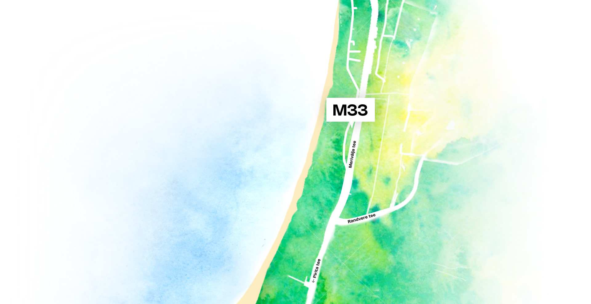 M33 Ärimaja asub aadressil Merivälja tee 33, Pirita linnaosas, Tallinnas – piirkonnas,
